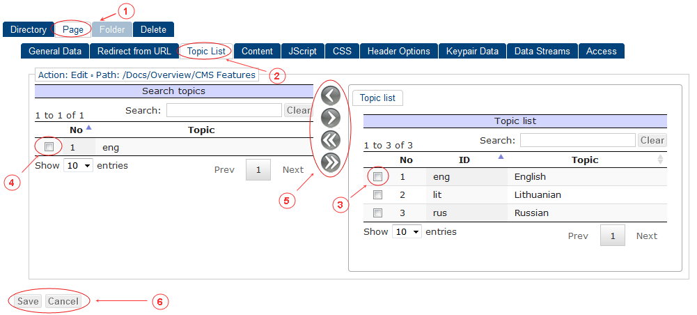 - Press "Save" if you are sure to save page data, or "Cancel" to cancel editing